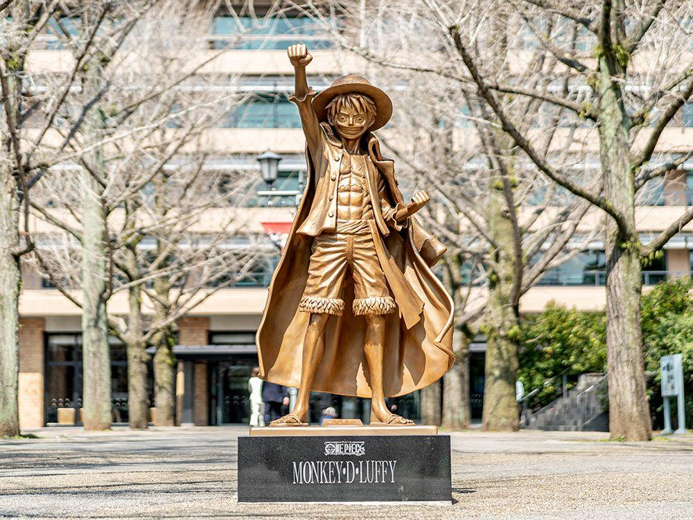 熊本にあるルフィ像は、「ONE PIECE」の主人公モンキー・D・ルフィをモデルにしたブロンズ像で、2018年に熊本県庁の敷地内に設置されました。この像は、熊本県出身である「ONE PIECE」の作者、尾田栄一郎氏の多大な支援と熊本地震の復興応援の一環として作られました。その後も、熊本県内各地には「ONE PIECE」のキャラクター像が設置され、現在、ゾロ、ナミ、ウソップ、サンジ、チョッパー、ロビン、フランキー、ブルックといった「麦わらの一味」の仲間たちの像が、熊本の様々な場所に設置されています。それぞれの像は地域ごとに関連性を持たせて設置され、観光スポットとしても人気を集めています。