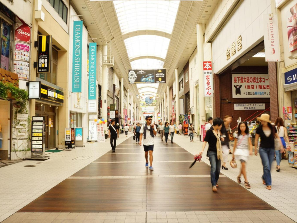 熊本最大規模のショッピングエリアの一つとして、下通アーケードと並び、熊本市内でのショッピングや観光に欠かせない場所として、地元の人々や観光客に親しまれています。全長約400メートルのアーケード街で、さまざまなジャンルの店舗が集まっています。ファッション、雑貨、カフェ、レストラン、書店、美容サロンなど、個性的なお店が並び、特におしゃれな雰囲気が漂うショッピングエリアです。ハイセンスなブランドショップやセレクトショップも多く、若者やトレンドに敏感な人々に人気があります。さらに、地元のイベントやキャンペーンも定期的に開催されており、四季折々の熊本の文化を感じることができるのも魅力です。